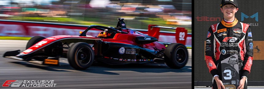 BROWNSBURG, IN – Exclusive Autosport is excited to confirm that Brenden Cooley will continue with the team in USF Juniors Presented by Continental Tire for the 2026 season. The 16-year-old will pilot the #92 Innovel Global Logistics Tatuus JR-23 in his second full season of USF Juniors competition. The Mokena, Illinois native came on strong during the second half of the 2025 campaign, showcasing growing confidence and consistency as the year progressed. Cooley’s upward momentum was highlighted by a breakthrough performance at Road America, where he captured his first career podium, signaling his potential and setting the stage for an exciting return with Exclusive Autosport in 2026.