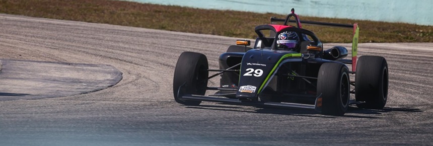 At Homestead, Colleran used the official test day to build confidence, refine the car’s setup and continue adapting to the demands of USF Juniors competition. She then turned that work into a trio of steady race results, advancing five positions in Race 1 to finish 16th, improving to 15th in Race 2, and capping the event with another 16th-place finish in Race 3. Across the weekend, she showed clean racecraft, composure in traffic and continued development as she narrowed the gap to the midfield battle.